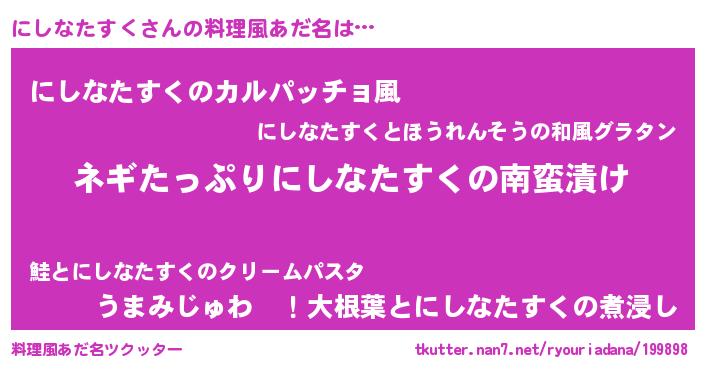 | 胡散臭い通販商品みたいなあだ名 | 『億万長者になれる水晶球…その名も「にしなたすく」』 |
