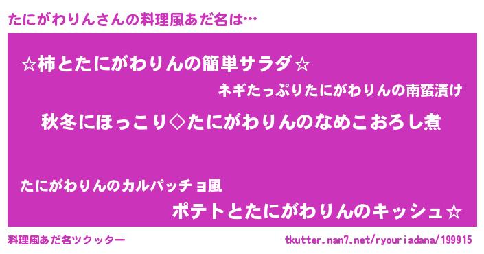 | 男性向けラノベタイトル風あだ名 | 『たにがわりんに滅ぼされるだけの簡単なお仕事です』 |