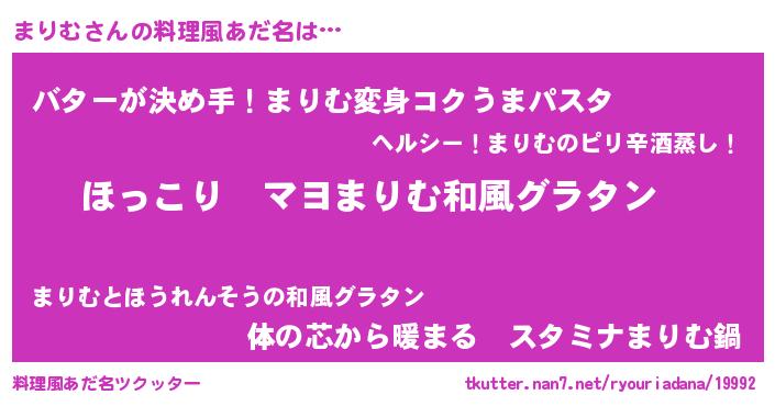 | ヘコむあだ名 | 『酢こんぶ』『まりむ(爆)』 |
