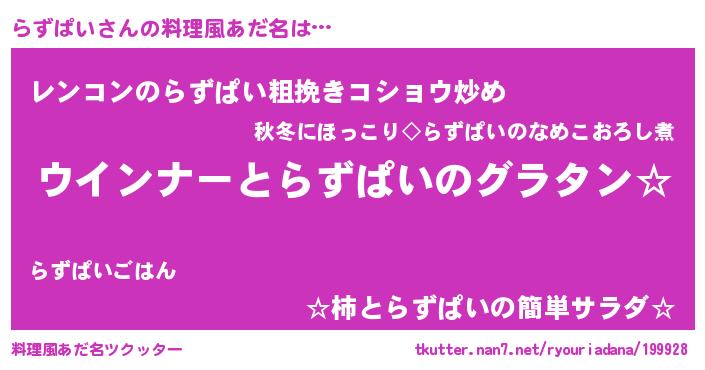 | ファンタジー風あだ名 | 『エターナルラズパイー』『ゼラズトゥ』 |