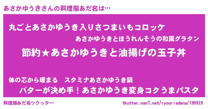| ヒーロー風カッコイイあだ名 | 『スーパーアサカユウキ』『仮面アサダー』 |