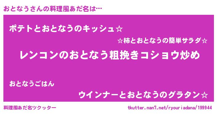 | 胡散臭い通販商品みたいなあだ名 | 『テレビで話題のアガリクス…その名も「おとなう」』 |