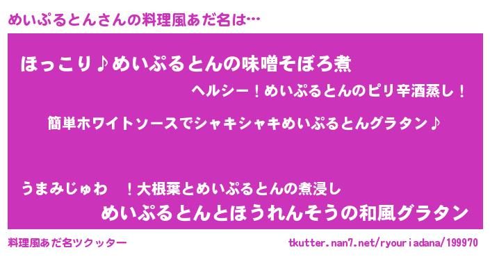 | 意味不明あだ名 | 『とにかく怪しいめいぷるとん』 |