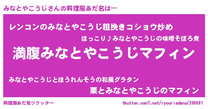 | 意味不明あだ名 | 『永久保存みなとやこうじ』 |