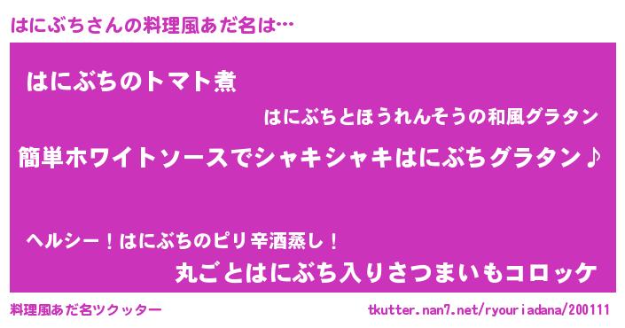 | ヒーロー風カッコイイあだ名 | 『幻影騎士ハニ』『正義の使者はにぶち』 |