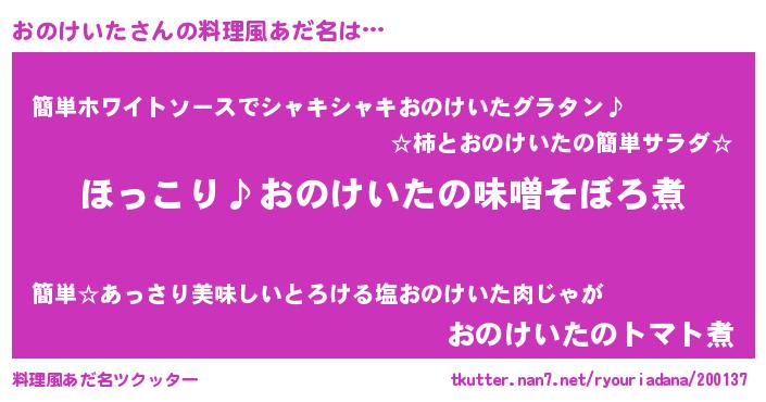 | 胡散臭い通販商品みたいなあだ名 | 『必ず成功する霊験あらたかなお札…その名も「おのけいた」』 |