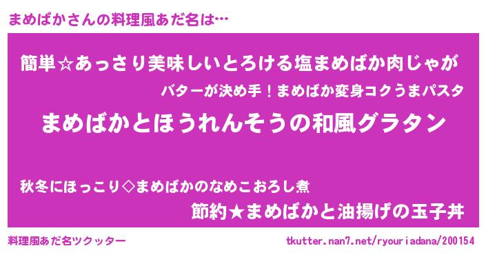 | 男性向けラノベタイトル風あだ名 | 『転生したらまめばかだった件』 |