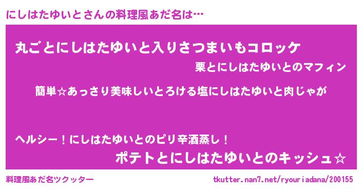| ヒーロー風カッコイイあだ名 | 『ネオニシハタユイト』『仮面ニシダー』 |