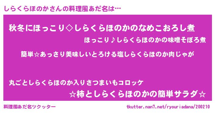 | 胡散臭い通販商品みたいなあだ名 | 『前代未聞の健康食品…その名も「しらくらほのか」』 |