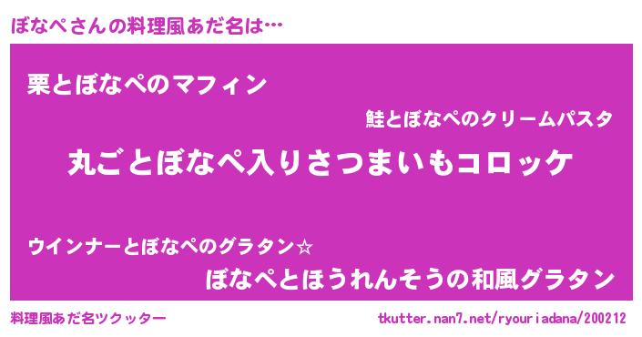 | ヒーロー風カッコイイあだ名 | 『仮面ボナダー』『正義の使者ぼなぺ』 |