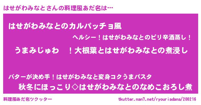 | 欧米人風あだ名 | 『はせがわみなとクリステル』 |