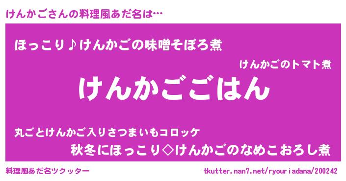 | ヘコむあだ名 | 『けんにー』『けんかご(震え声)』 |