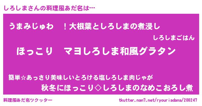 | 意味不明あだ名 | 『住所不定無職しろしま(68歳)』 |