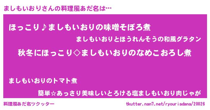 | 男性向けラノベタイトル風あだ名 | 『ましもいおりに滅ぼされるだけの簡単なお仕事です』 |