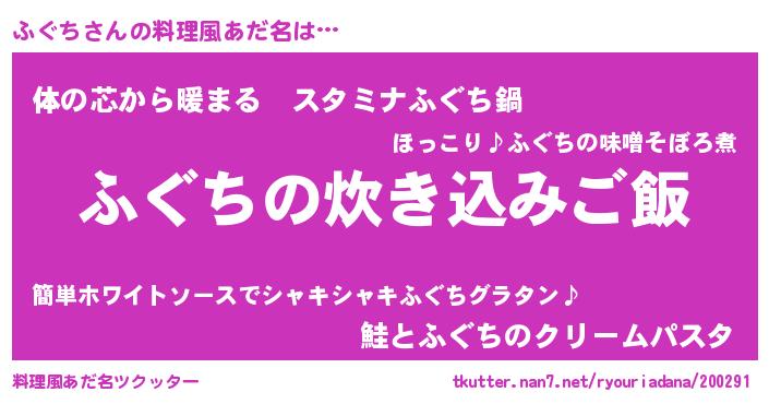 | ポケモン風あだ名 | 『メロフッグ』『フグチダネ』 |