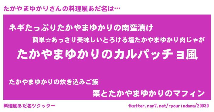 | ヘコむあだ名 | 『たかふぇ~』『たかやまゆかり(爆)』 |