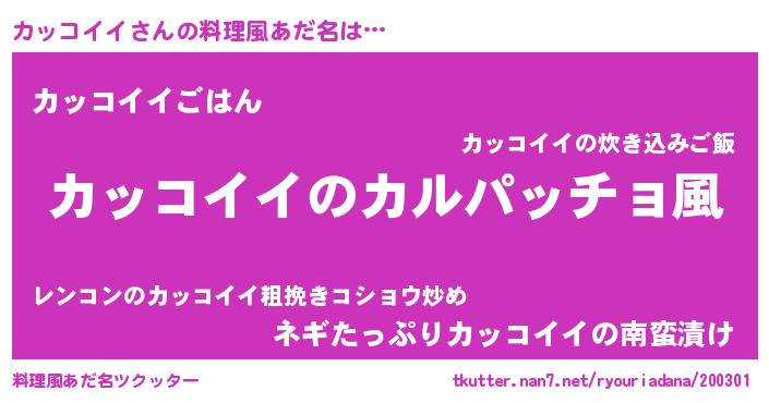 | 意味不明あだ名 | 『住所不定無職カッコイイ(43歳)』 |