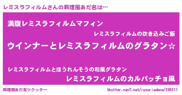 | 意味不明あだ名 | 『レミスラフィルムフォーエバー』 |