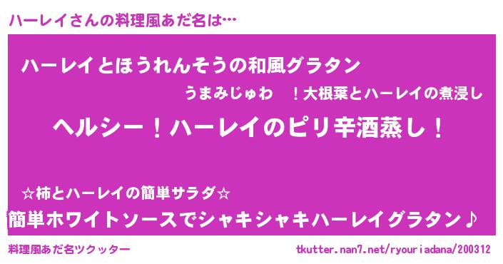 | ヒーロー風カッコイイあだ名 | 『最強戦士ハーレイ』『魔戒騎士ハー』 |