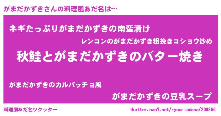 | ピコ太郎風あだ名 | 『ピコガ郎』『ガコ六郎』『ガマ八郎』 |