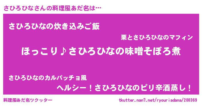 | ヘコむあだ名 | 『さひにー』『さひろひな(小並感)』 |