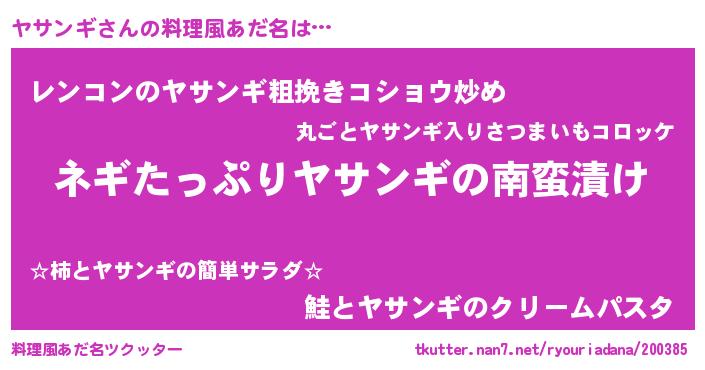 | ピコ太郎風あだ名 | 『ヤコ五郎』『ヤヤ太郎』『ピコヤ郎』 |