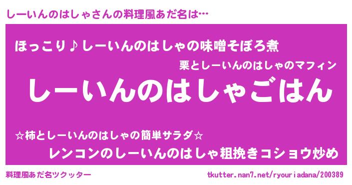 | 胡散臭い通販商品みたいなあだ名 | 『必ず成功するブレスレット…その名も「しーいんのはしゃ」』 |