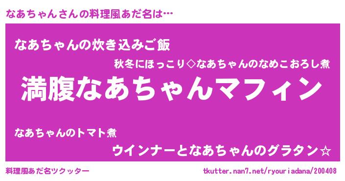 | 意味不明あだ名 | 『永久保存なあちゃん』 |