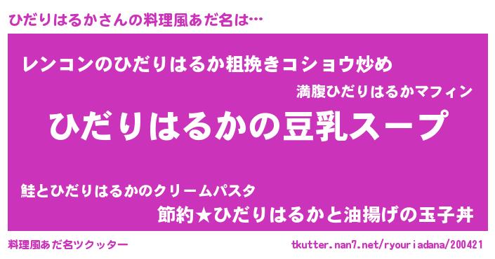 ポケモン風あだ名 | 『ヒヒダリハルカ』『ヒダセウス』 |