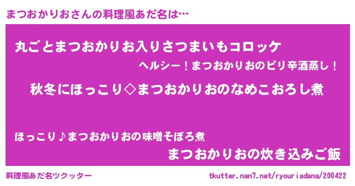 | 意味不明あだ名 | 『住所不定無職まつおかりお(43歳)』 |