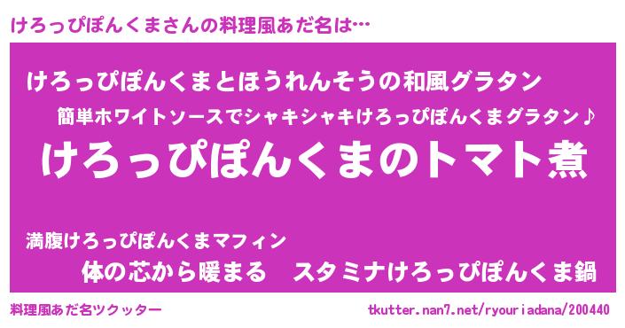 | ヒーロー風カッコイイあだ名 | 『正義の使者けろっぴぽんくま』 |