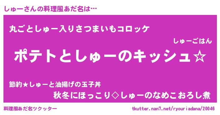 | ポケモン風あだ名 | 『ヒシュー』『シーュイ』『シュゴンZ』 |