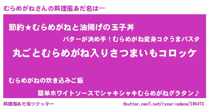 | 意味不明あだ名 | 『住所不定無職むらめがね(50歳)』 |