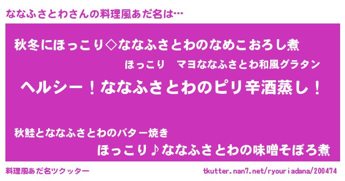 | 意味不明あだ名 | 『自称ななふさとわ』 |