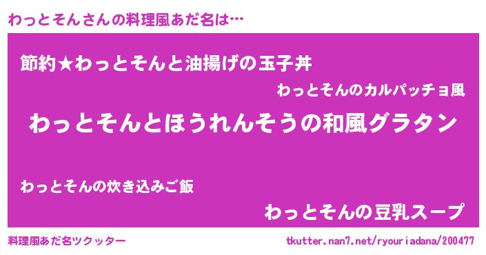 | 胡散臭い通販商品みたいなあだ名 | 『億万長者になれる水晶球…その名も「わっとそん」』 |