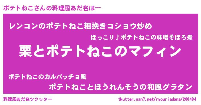 | 意味不明あだ名 | 『自称ポテトねこ』『ペロリンポテトねこ』 |