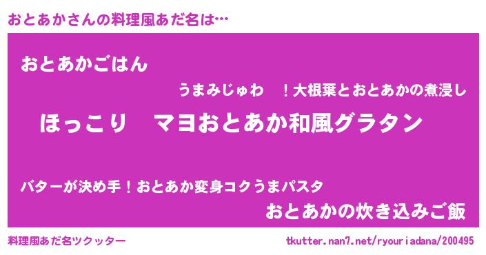 | 男性向けラノベタイトル風あだ名 | 『この素晴らしい世界におとあかを!』 |