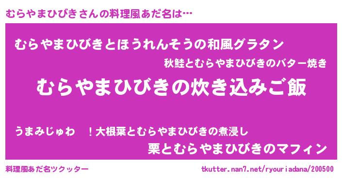 | ヒーロー風カッコイイあだ名 | 『ネオムラヤマヒビキ』『仮面ムラダー』 |