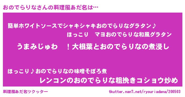 | 欧米人風あだ名 | 『おのでらりなクリステル』 |