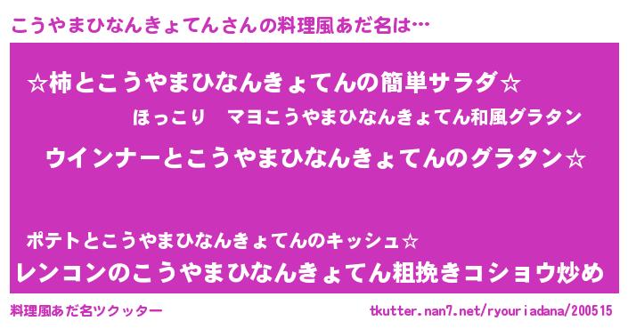 | 欧米人風あだ名 | 『こうやまひなんきょてんクリステル』 |