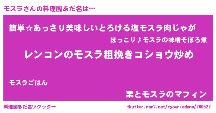 | 男性向けラノベタイトル風あだ名 | 『魔法科高校のモスラ』『モスラの憂鬱』 |