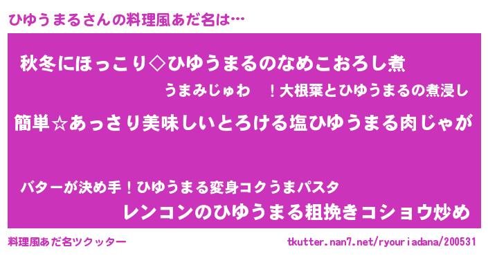 | ヘコむあだ名 | 『ひゆうまる(遠い目)』『酢こんぶ』 |