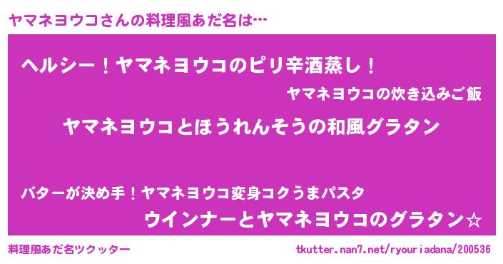| 胡散臭い通販商品みたいなあだ名 | 『テレビで話題の高麗人参…その名も「ヤマネヨウコ」』 |