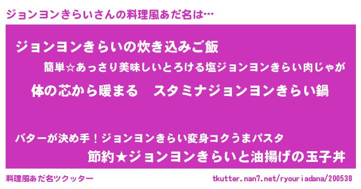 | 欧米人風あだ名 | 『ジョンヨンきらいクリステル』 |