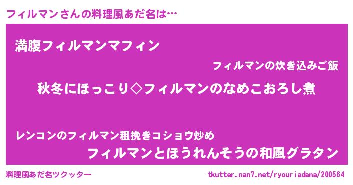 | 胡散臭い通販商品みたいなあだ名 | 『来世でも幸せになれる健康食品…その名も「フィルマン」』 |