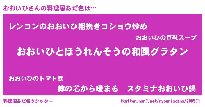 | 意味不明あだ名 | 『なめこ科おおいひ属』『自称おおいひ』 |