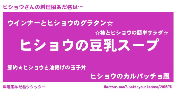 | ピコ太郎風あだ名 | 『ヒシ八郎』『ピヒ八郎』『ヒコ三郎』 |