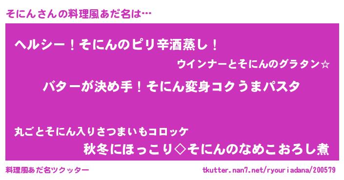 | 女子向けラノベタイトル風あだ名 | 『そにん恋絵巻』『闇のそにん』 |