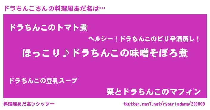 | 男性向けラノベタイトル風あだ名 | 『ドラちんこの憂鬱』 |