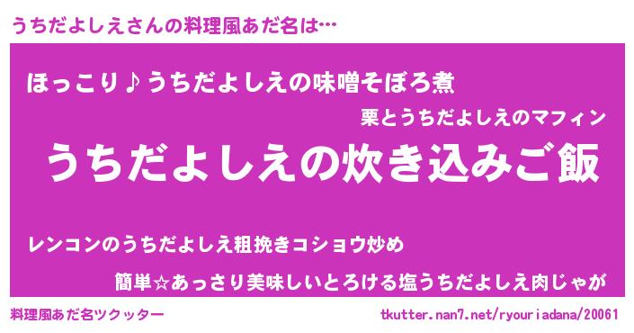 | 肩書あだ名 | 『うちだよしえ船長』『うちだよしえ社長』 |